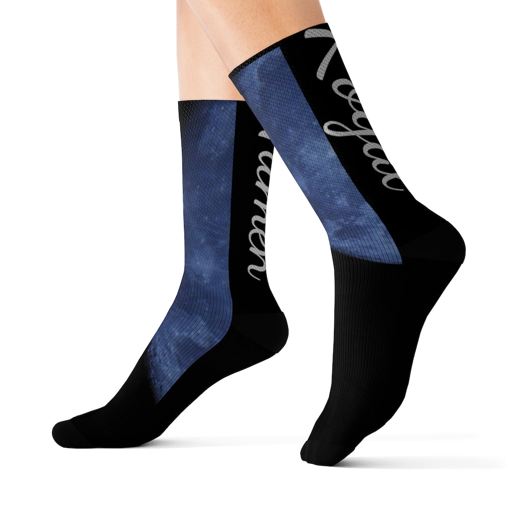 These high-quality socks with sublimated print provide optimum comfort with style wherever one might go - a subtle accent to complement an office look or an eye-catching statement for an extravagant outfit. .: 95% Polyester, 5% Spandex.: 3 different sizes.: Ribbed tube.: Cushioned bottoms.: NB! Printed with flat sublimation method. Color discrepancy can be seen on side seams