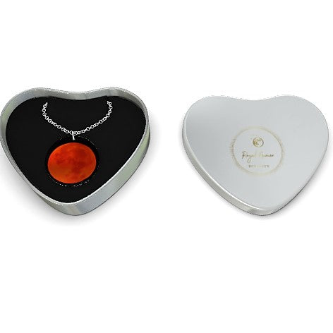 This beautiful red moon pendant necklace is handcrafted from sterling silver and is stamped with the 925 marking. The heart shaped box is also stamped and is a great keepsake. It will make a perfect gift for any occasion. This piece of jewellery has a timeless charm and will look great with any outfit. Made to last a lifetime, it will be a true treasure for her.