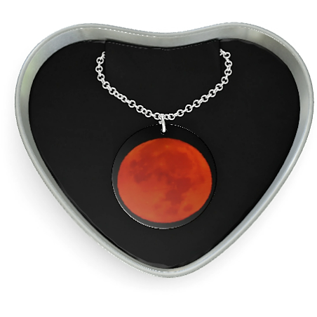 Red Moon Sterling Silver Necklace Made from sterling silver Chain and disk stamped with silver 925 marking Handmade in the UK Heart shaped box included Printed with eco-friendly inks Care instructions Wipe or polish gently with a soft lint free cloth.