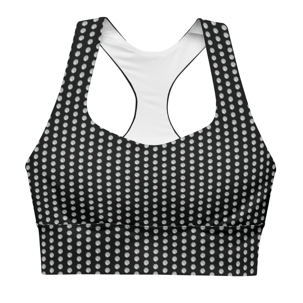 Work out in style with the help of this sports bra. It's the perfect workout top for exercising that helps you feel comfortable and supported when working out. The compression fabric along with double-layered front and shoulder straps ensures great support while running, jumping, or pumping iron. Achieve a clean, sleek look with this lightweight sport bra. The sporty polka dots are a modern and trendy styling that is a great contrast to plain garments. A fashionable polka dot design that is sure to be a standout in any wardrobe. This comfortable, lightweight, and supportive bra is the perfect option for a busy workout routine.